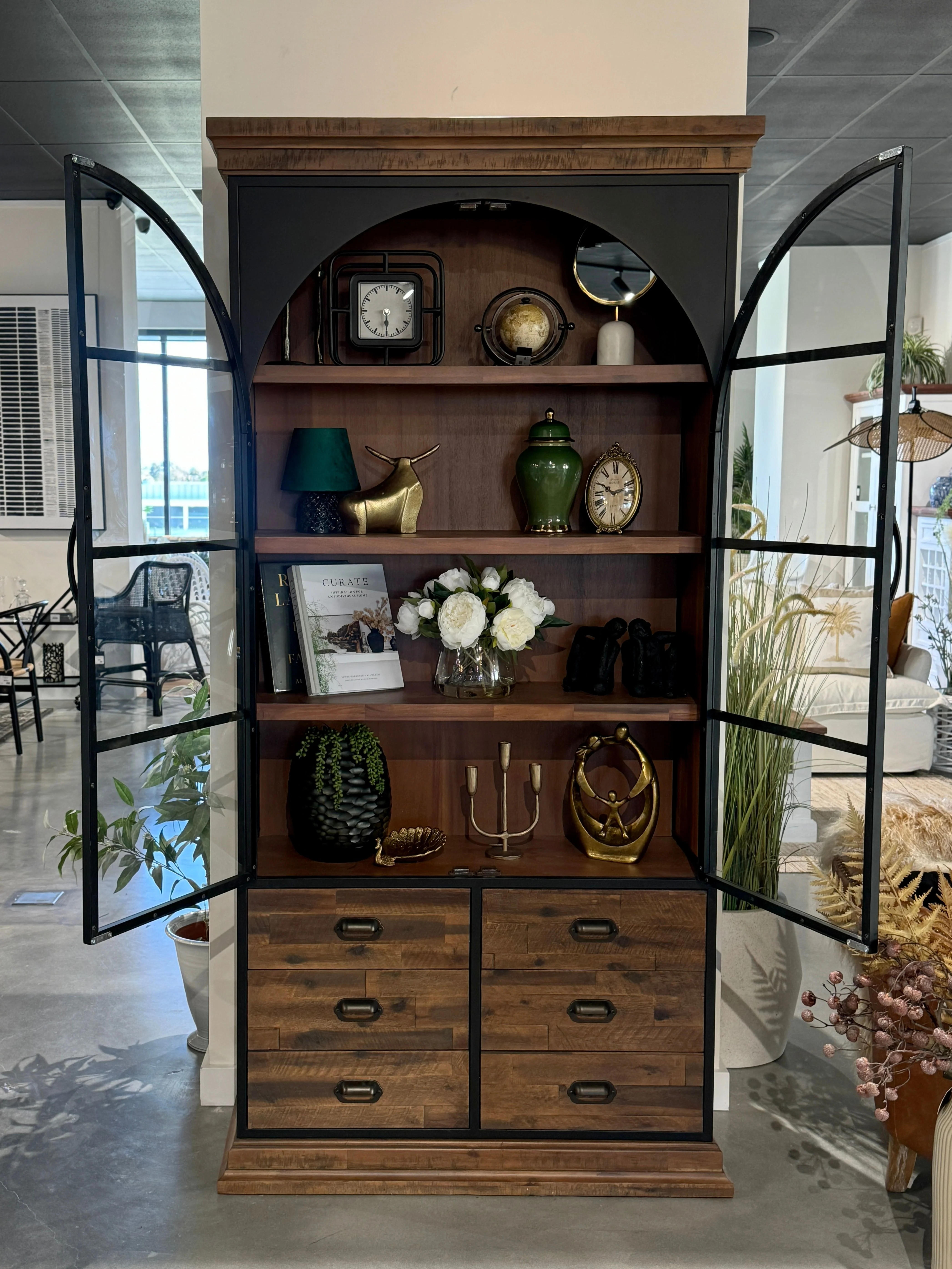 The perfect blend of rustic charm and modern functionality, the Artisan Bookcase with 6 Drawers features a striking contrast of solid hardwood paired back with black metal trim. Four spacious shelves and six convenient drawers, providing ample storage for books, dĂ©cor, and more.Â