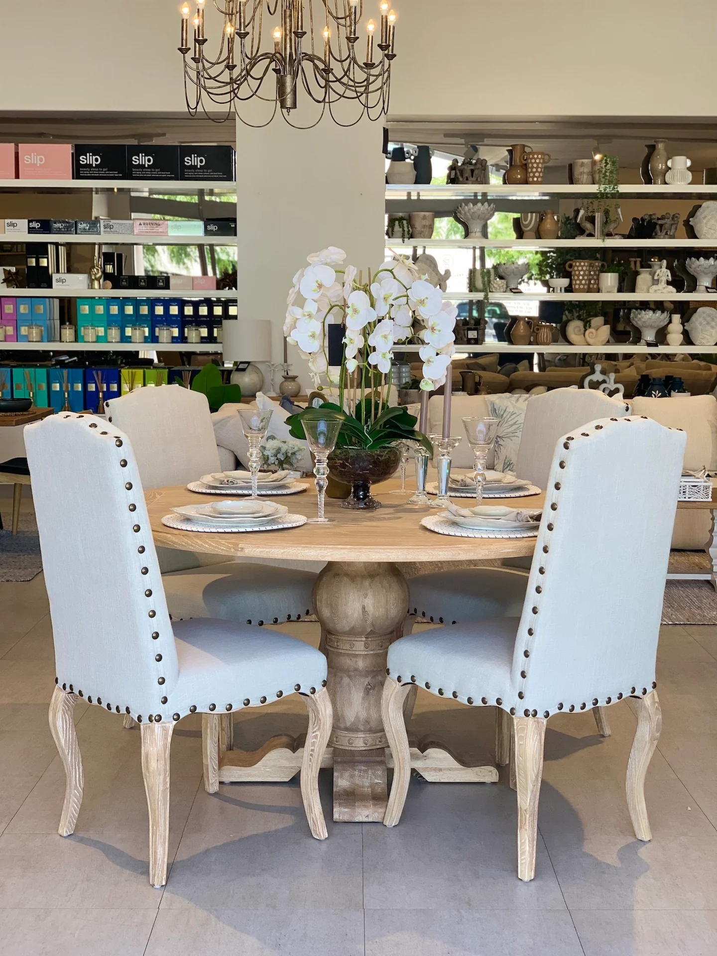 A French-inspired masterpiece for the dining space, the Corsica Dining Table crafted from solid oak features a grand pedestal base and rustic finish. Exuding warmth, sophistication, and a sense of luxury.