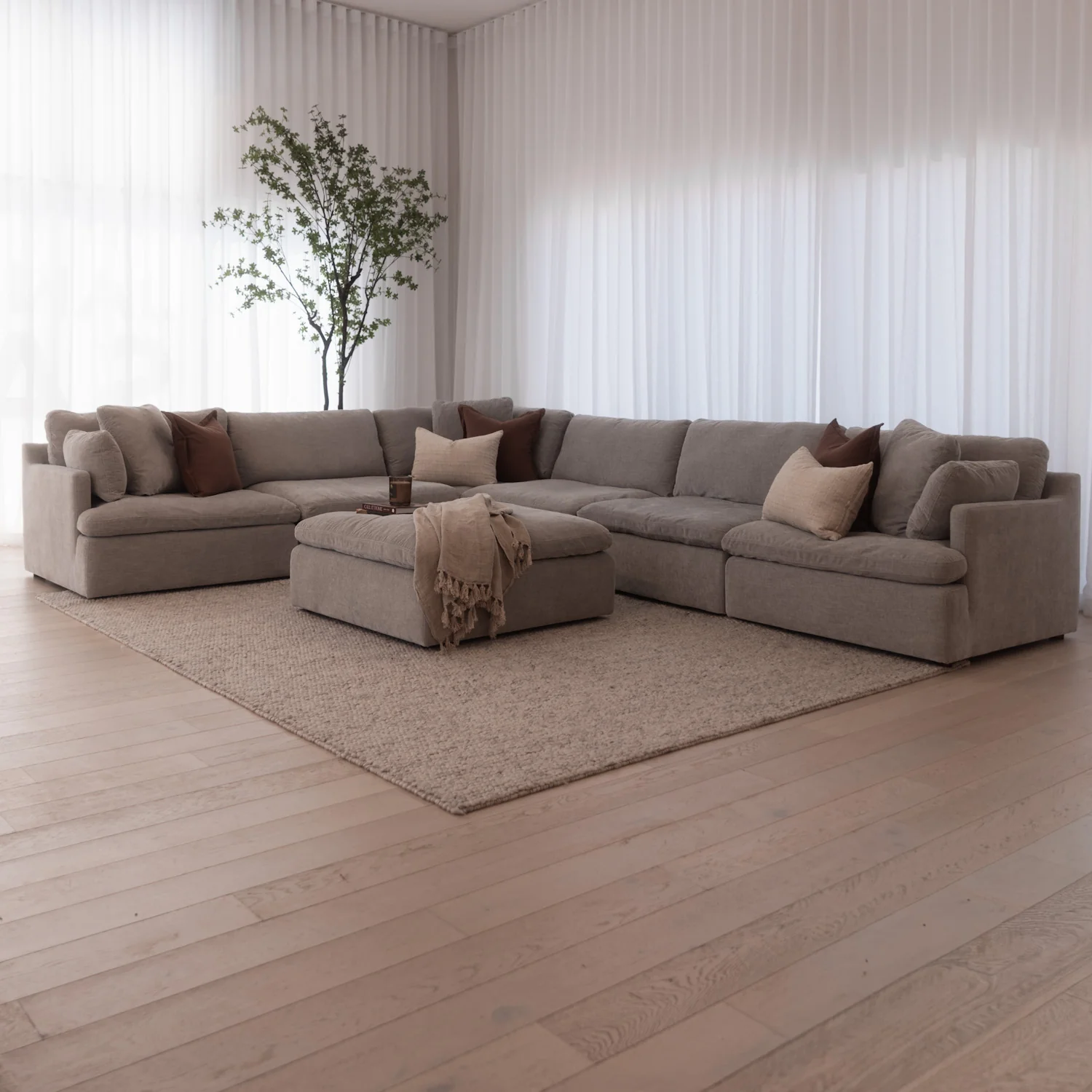 Featuring premium goose feather filled cushions, the Mornington Modular has slender track arms and is upholstered in a serene shade of grey. As a true modular, the Mornington features 5 unique pieces that can be arranged in almost endless combinations to suit your space.