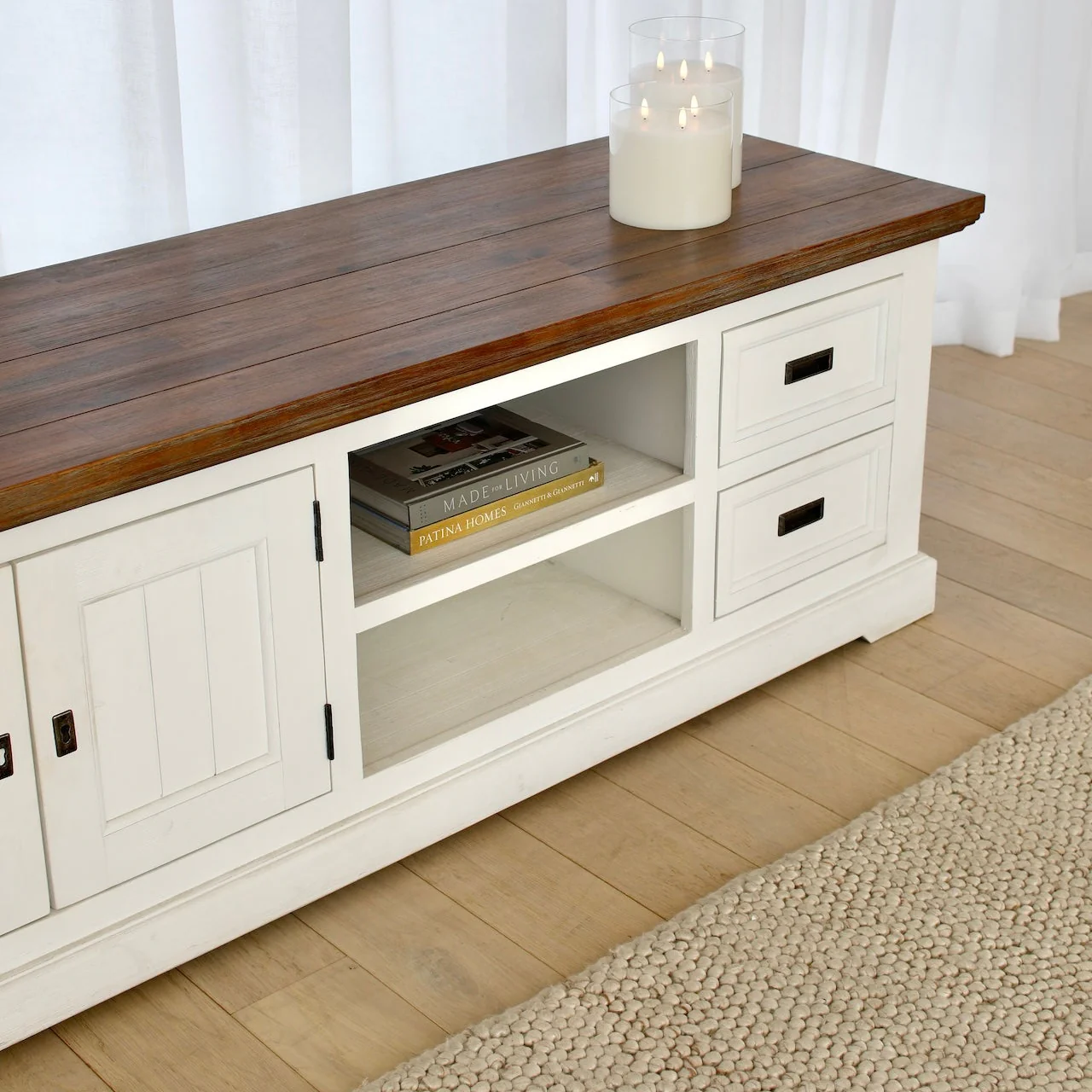 Made from acacia and wedge wood in a two-tone design, the Surrey Entertainment Unit will bring a relaxed Hamptons feel to your living room.